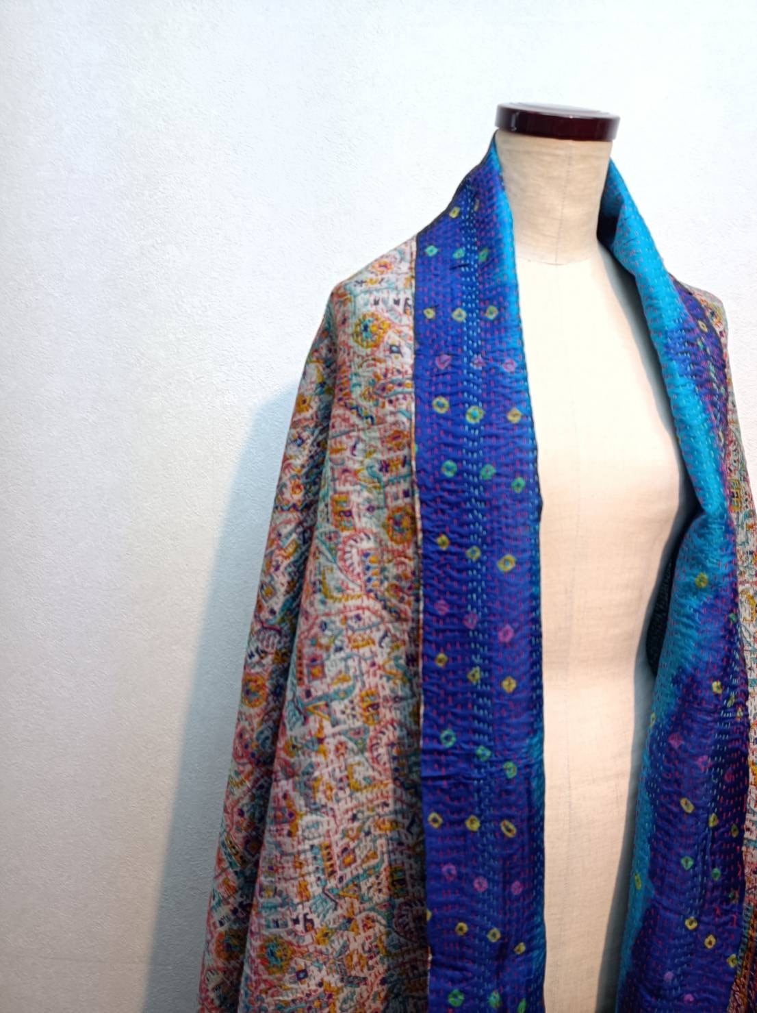 物を粗末にせずに大切に扱うインドの風習に沿ったカンタ刺繍/ラリーキルト柄