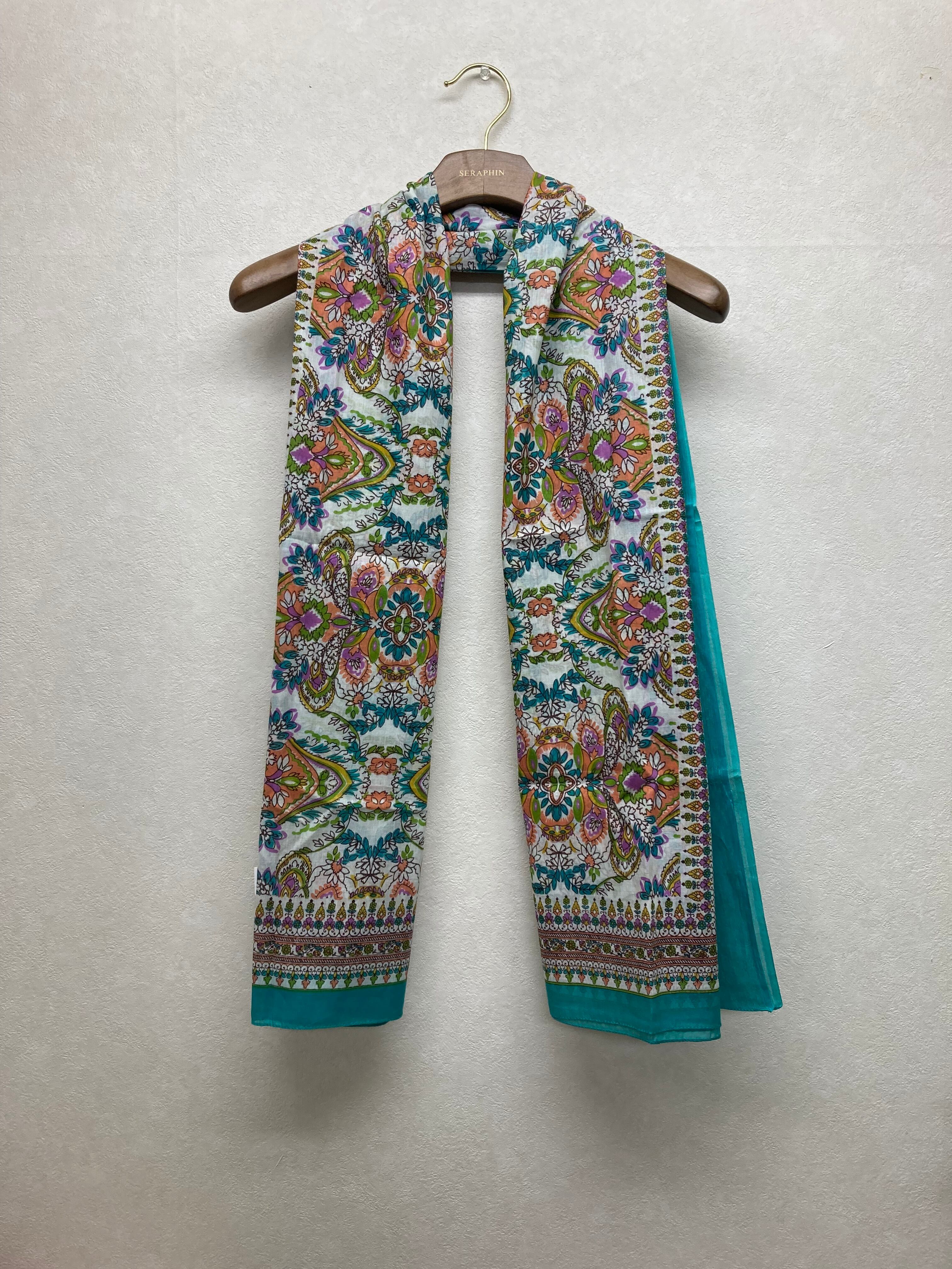 上品なコットン素材を使ったこのロングショールは、シルクのような光沢感があり、特別なシーンでも普段使いでも活躍するアイテムです。インド製品の中でも高品質なコットンを厳選し、柔らかな肌触りが特徴です。どんなコーディネートにも合わせやすく、洗練された印象を与えることができます。
