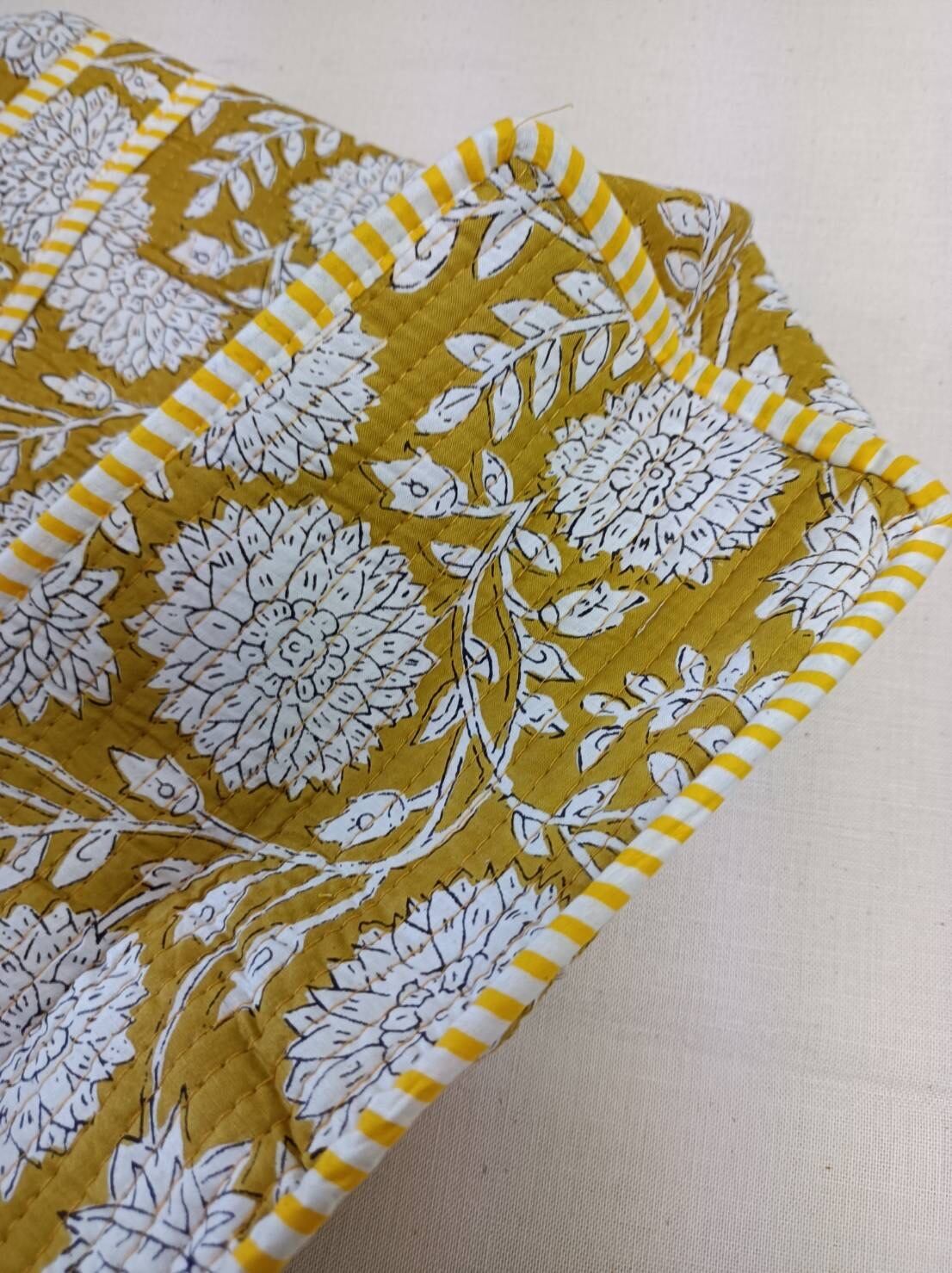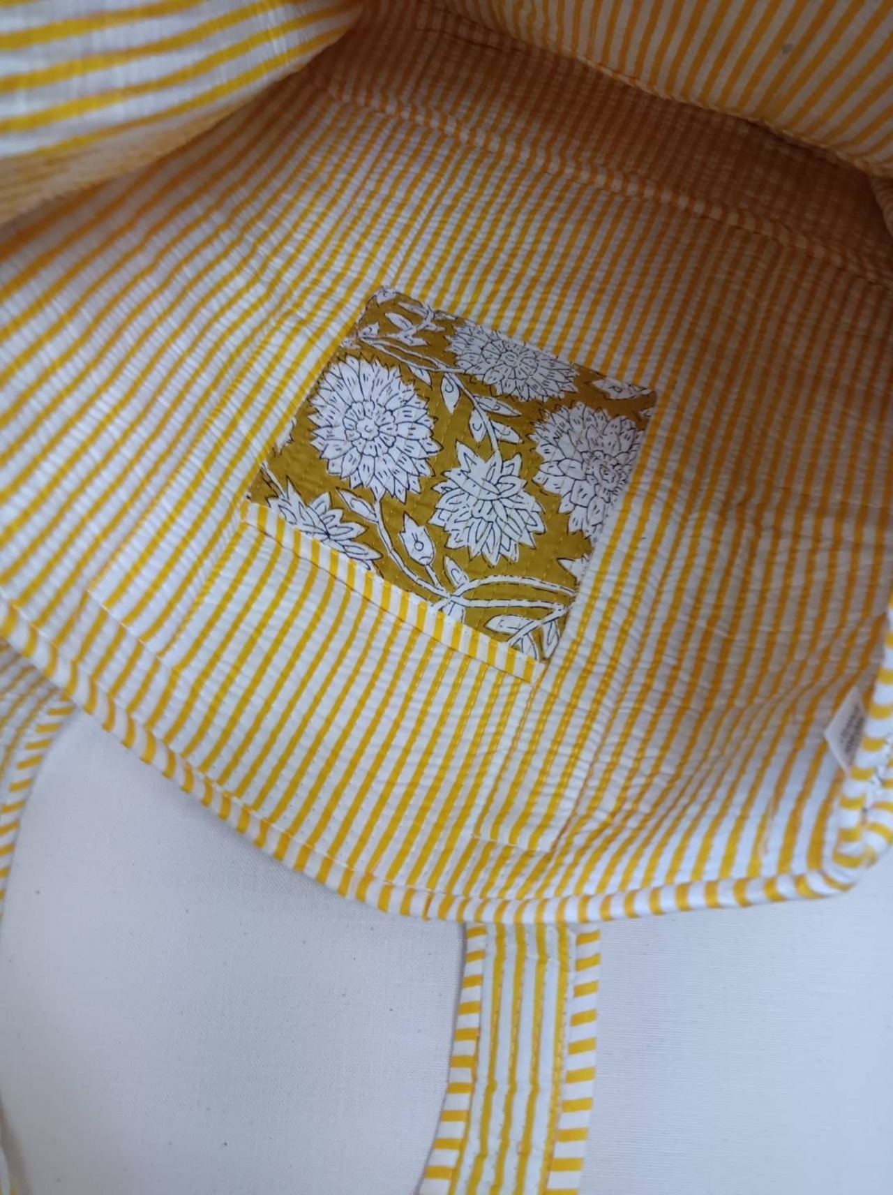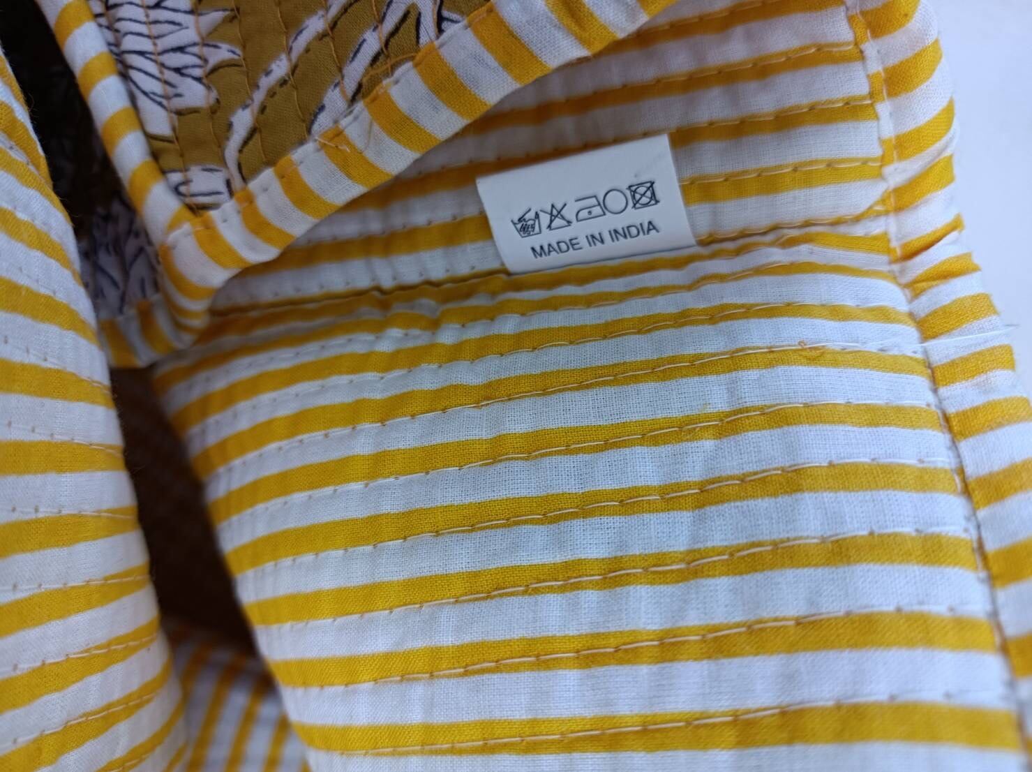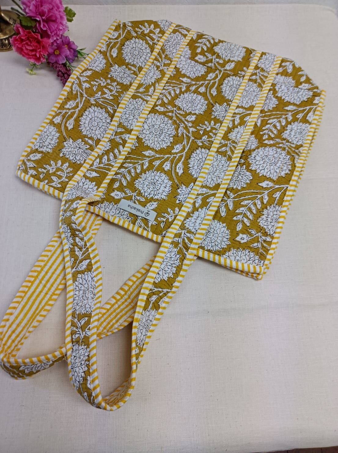 インド製のコットンキルトを使用したこのトートバックは、軽くて持ち運びがしやすく、カジュアルな日常シーンにぴったりのアイテムです。インドらしいかわいい柄が特徴で、気軽なお出かけからショッピング、ヨーガなどのお稽古着入れまで幅広く活躍します。日常生活の中で使いやすいデザインで、さりげなくあなたのファッションにアクセントを加えます。