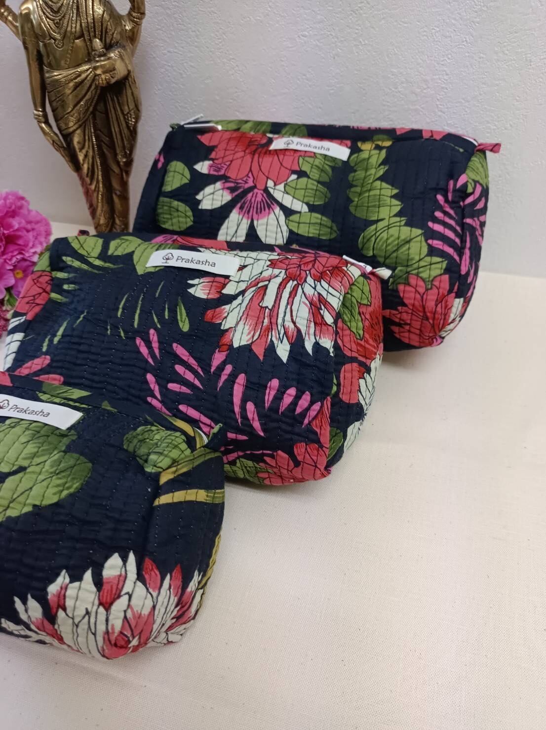 ボタニカル柄がかわいいポーチは、軽量かつ使いやすい設計で、日常のさまざまなシーンにぴったりのアイテムです。独特なインドキルトのデザインは、個性的でありながらも、かわいらしさを引き立てることができるので、持つだけで気分が上がります。